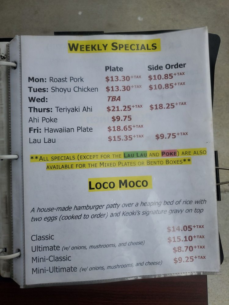 Keoki’s Hawaiian Barbeque Menu (Update 2025)